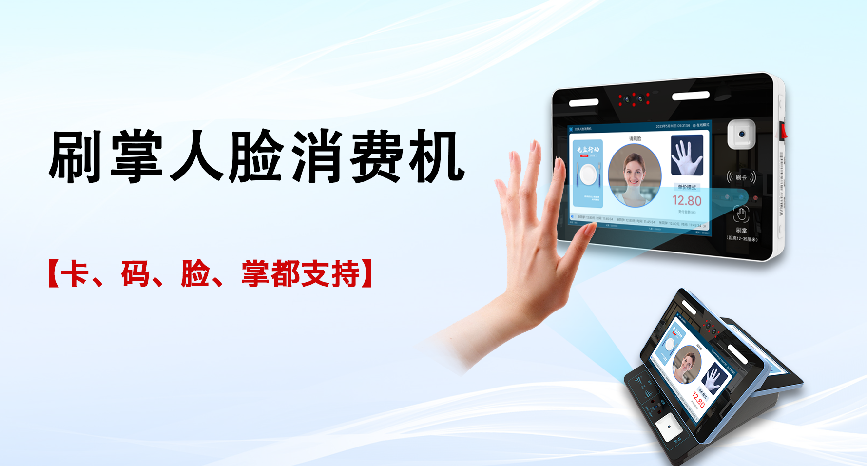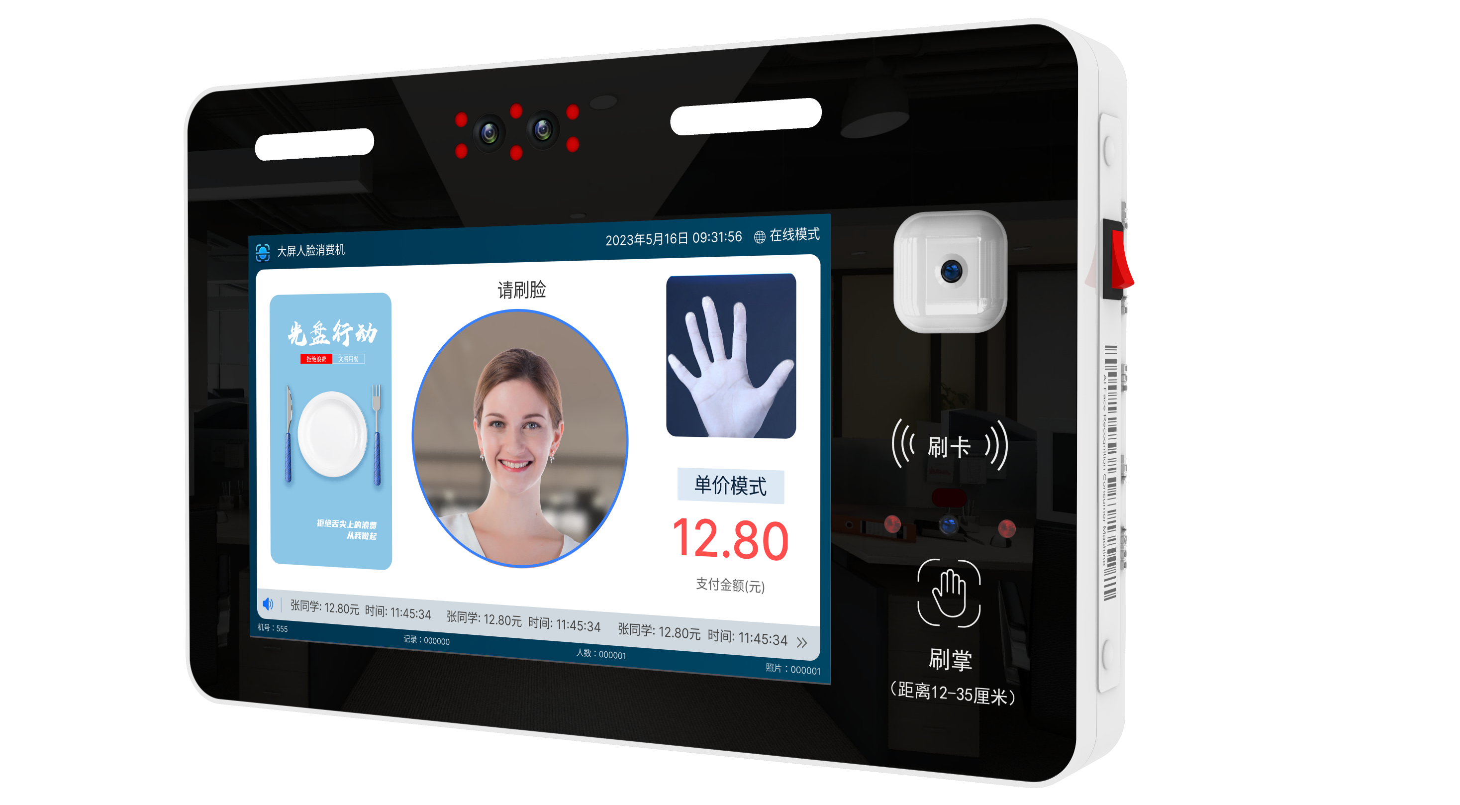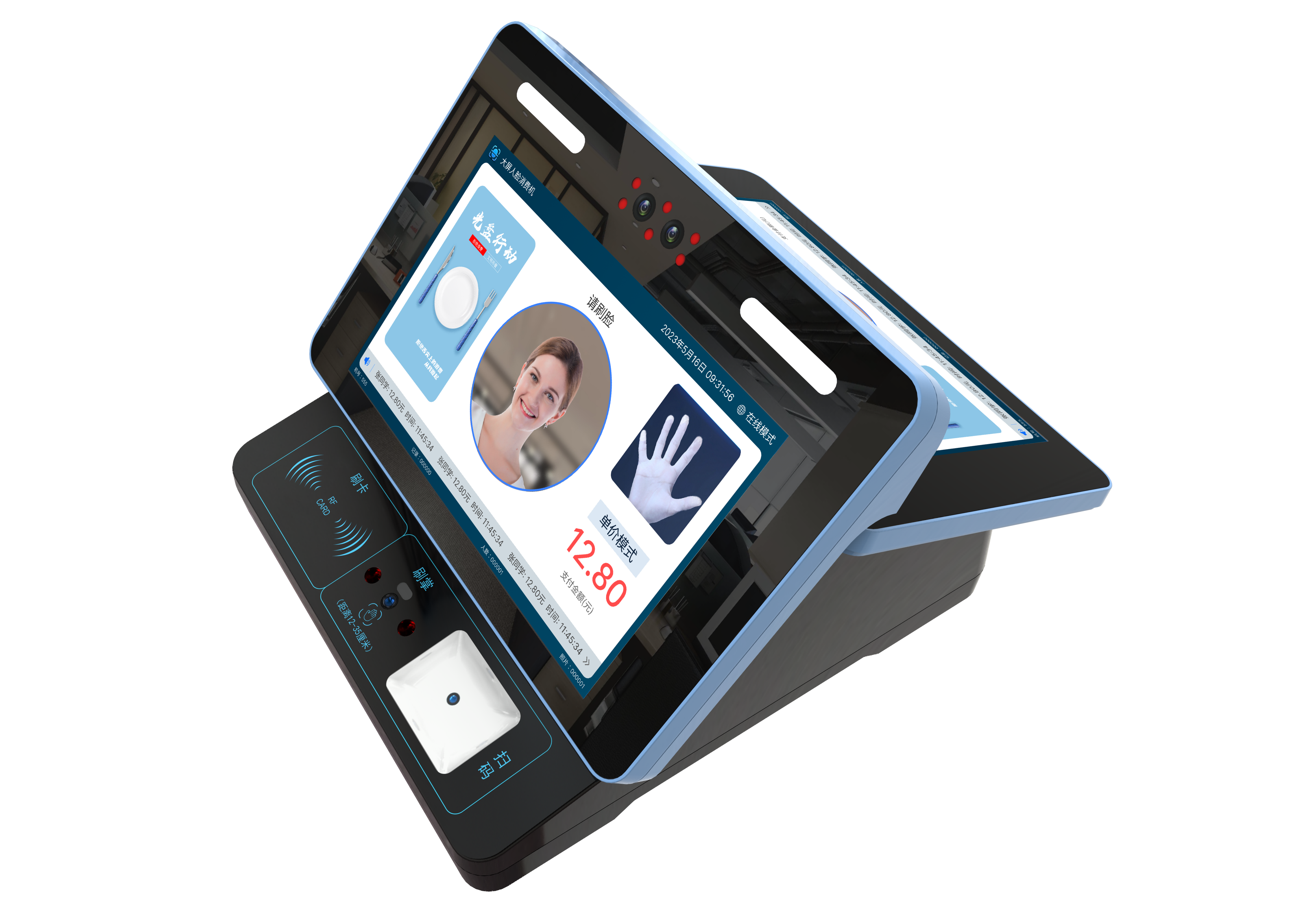 10.1寸双触摸大屏,刷脸、刷掌、刷码、刷卡四合一,总有一种方式适合你!
