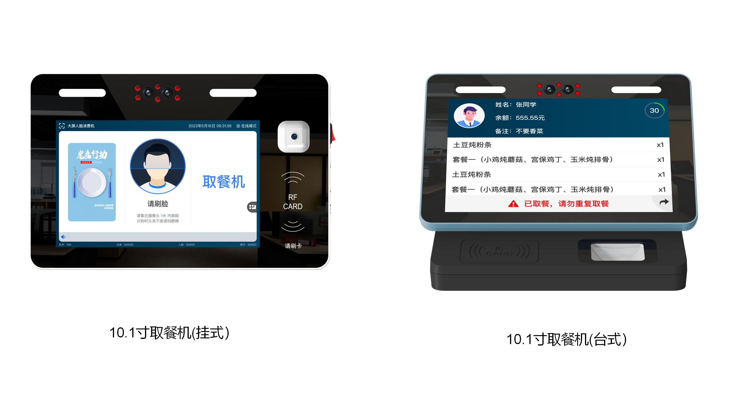 人脸取餐消费机为取餐和消费混用工作模式,优先取餐并兼顾消费功能,适用于即能满足取餐工作,也能用于人脸消费的档口使用。