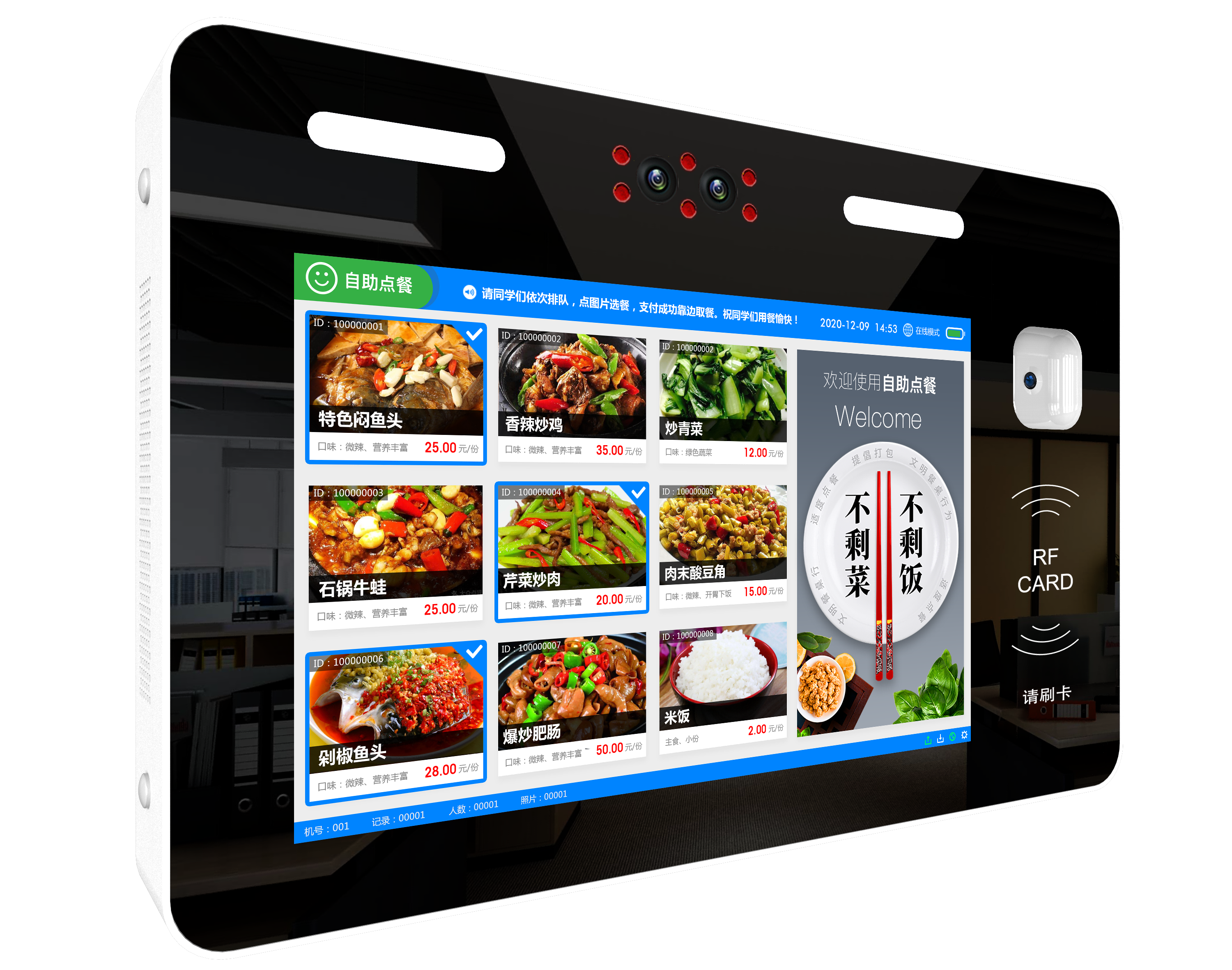 人脸、扫码、刷卡三合一,既是一台点餐机,又是一台消费机,还是一台自助机